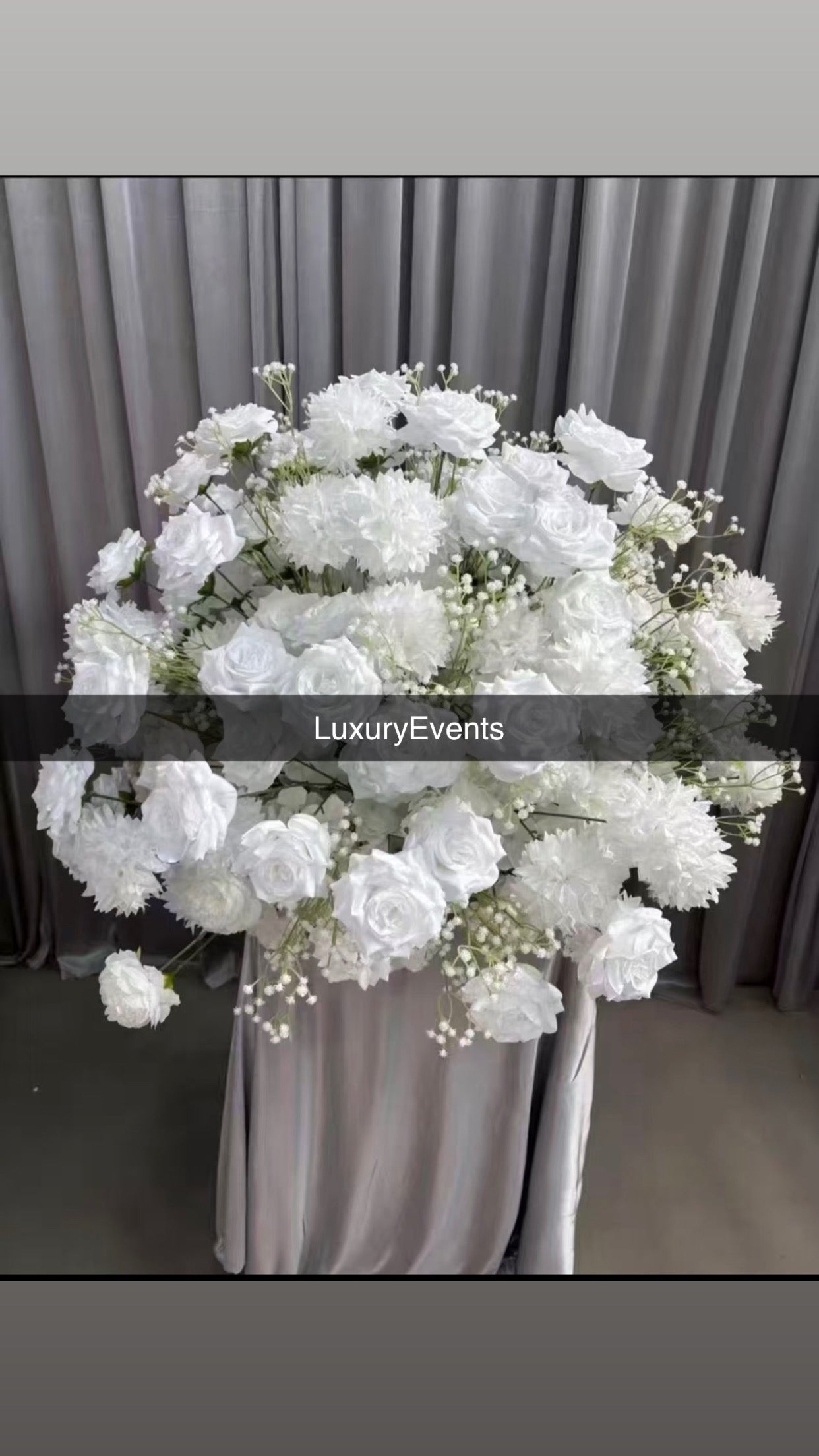 Élégante et raffinée, cette composition florale blanche est composée de roses, hortensias et gypsophiles. Idéale pour décorer vos événements ou votre intérieur avec une touche de douceur.